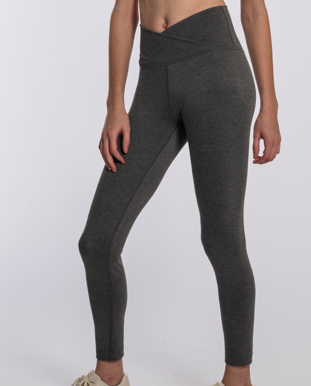 A must-have for in and out of the gym, these buttery soft leggings feature a high waisted flattering crossover waistband. With light support in the gym and comfort for everywhere else you need to go!