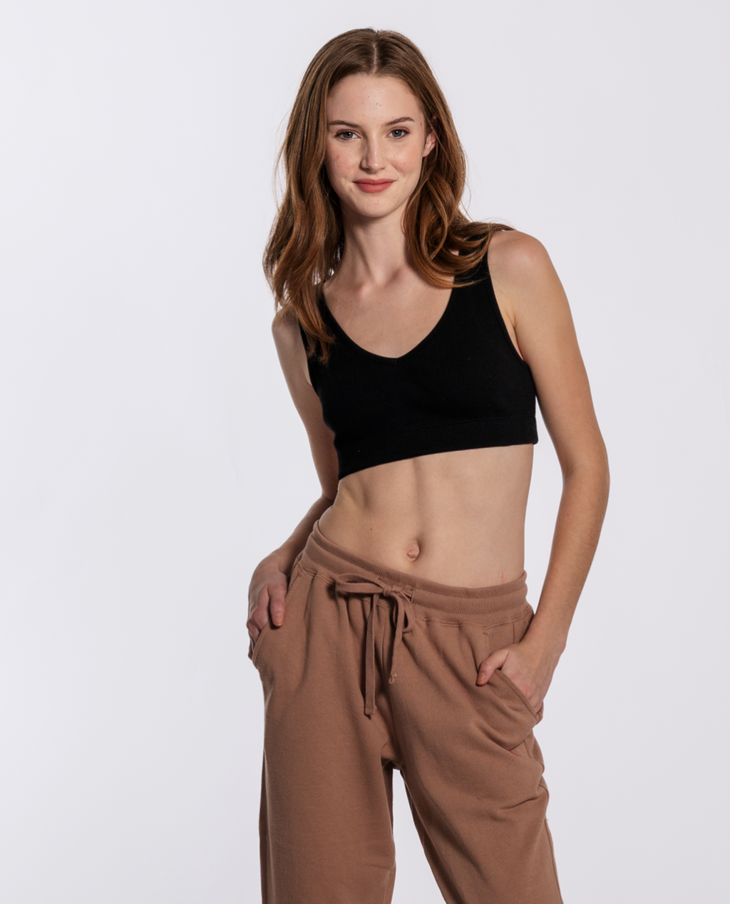 Flattering and offering light support, this top will have you excited for every work out! The scoop v-neck and plunge back allows for range and comfort while you move, featuring micro rib 95% cotton fabric.
