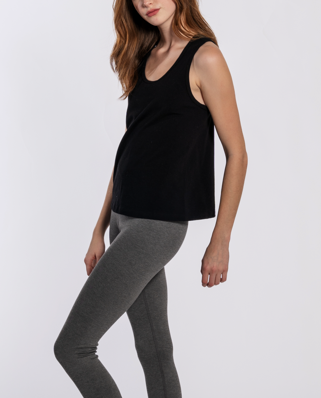 Flowy racerback tank with scoop neckline allowing maximum coverage. Great for layering over a sports bra! Also makes a great wardrobe staple outside of the gym.