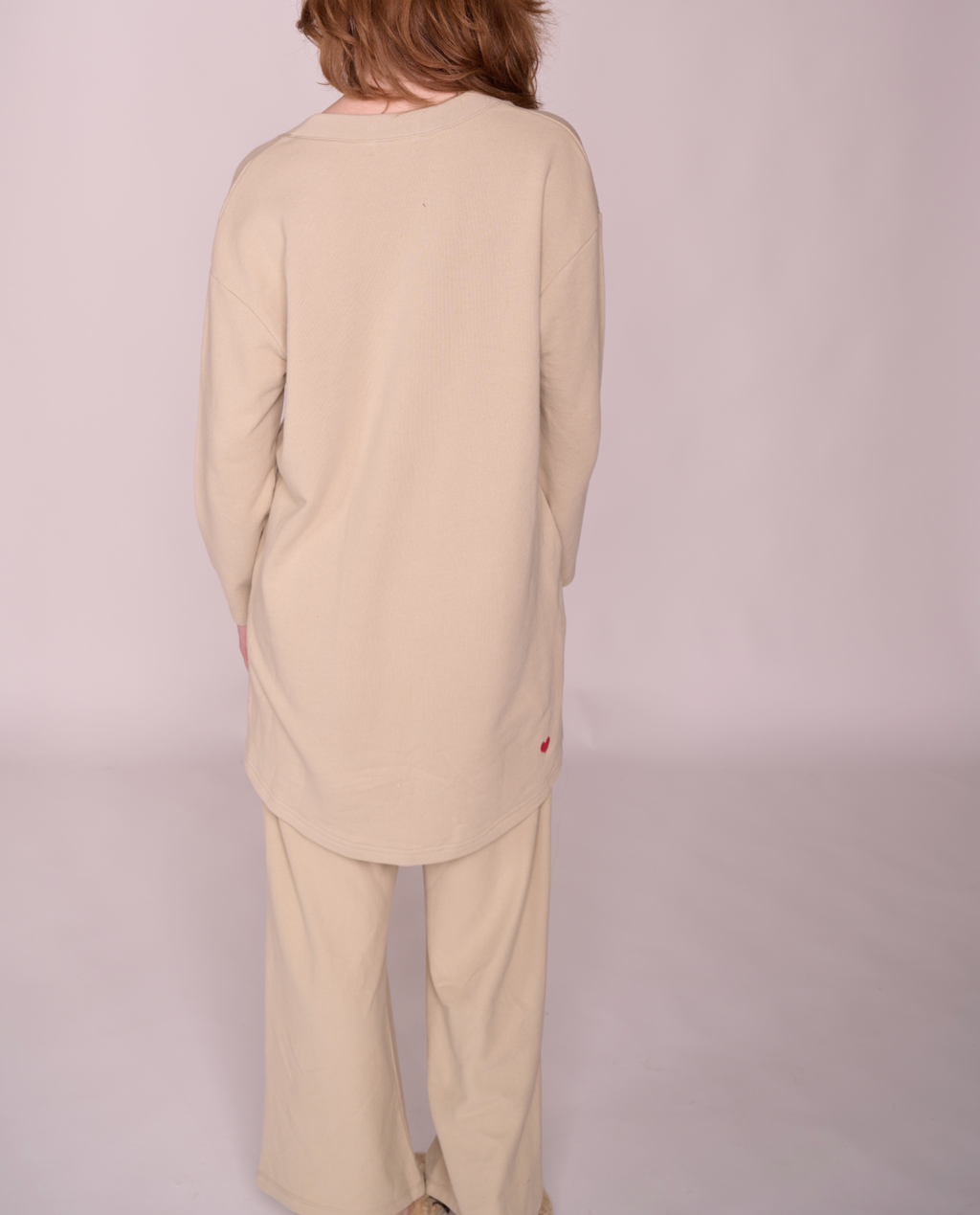 Embrace a chic and relaxed look with this boxy deep V-neck neckline and functional pockets. Made from premium 100% cotton 14 oz terry fabric & 50% recycled yarn — this sweatshirt offers a cozy and luxurious feel.
