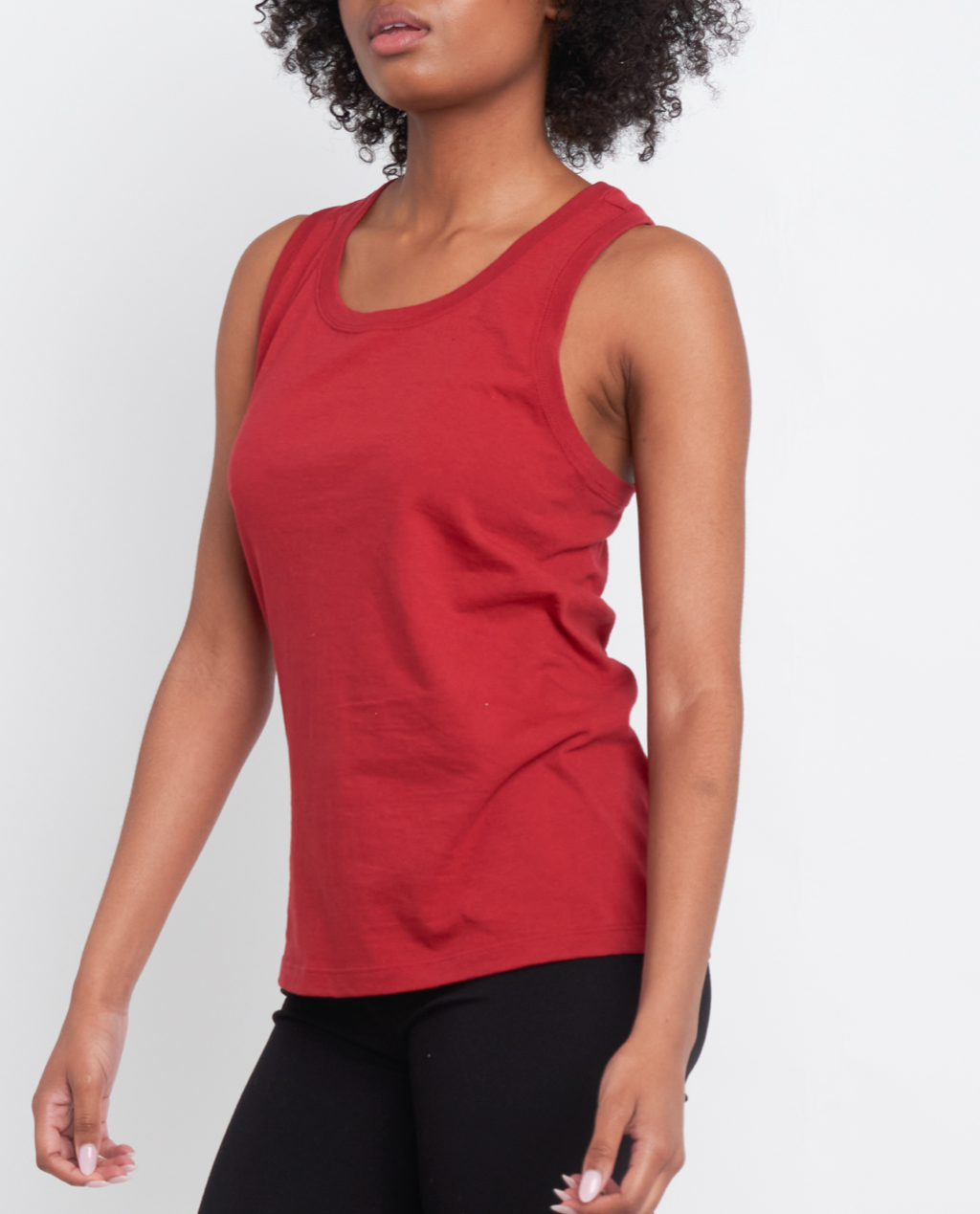 Flowy racerback tank with scoop neckline allowing maximum coverage. Great for layering over a sports bra! Also makes a great wardrobe staple outside of the gym, made with 100% cotton.