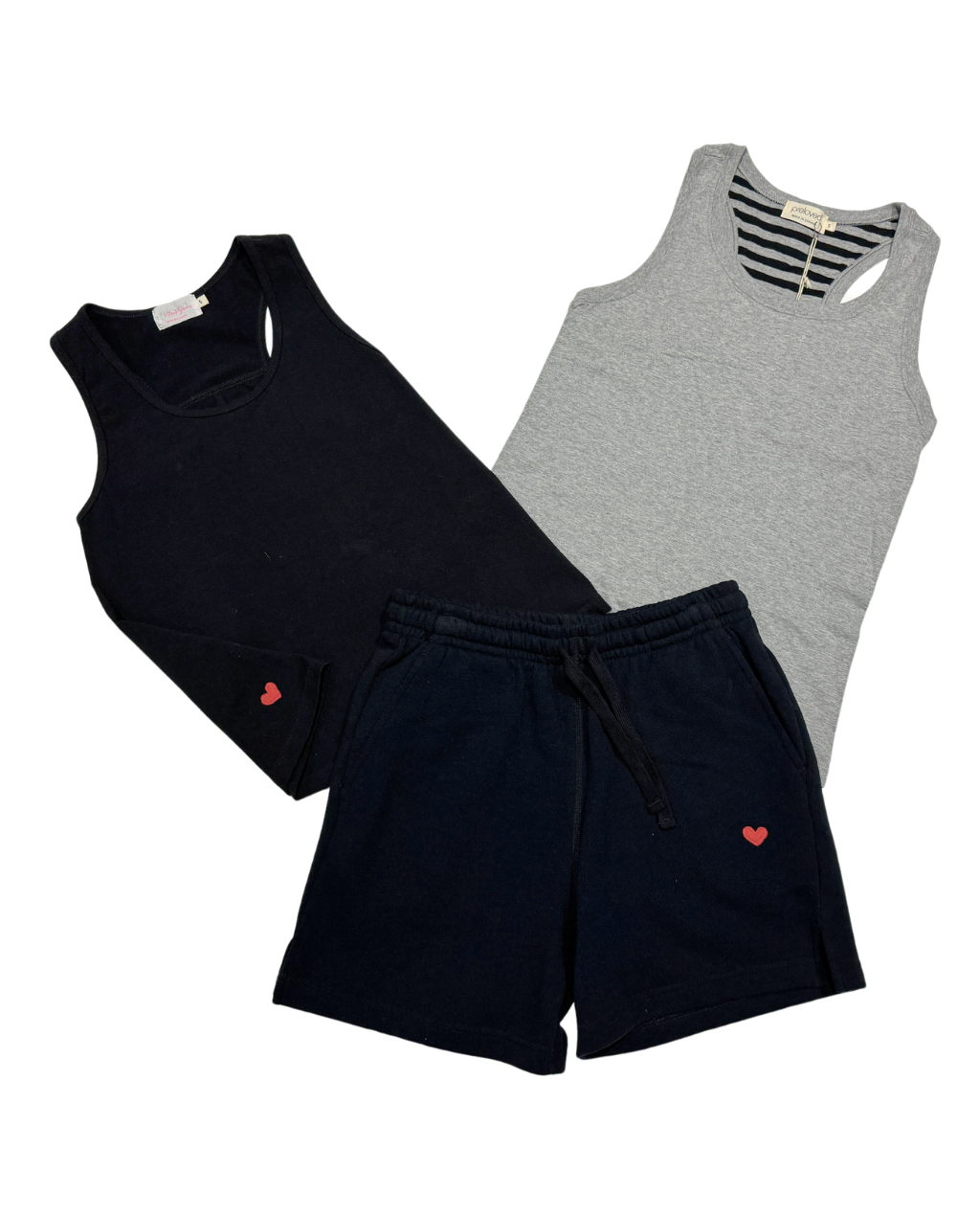 Radiate confidence with our Radiant Bundle! This dynamic trio includes two stylish racerback tanks paired with comfy sweatshorts. Whether you're hitting the gym or embracing laid-back vibes, the Radiant Bundle ensures you shine bright in fashion-forward activewear. All pieces made with 100% cotton. Savings of $74 in this bundle!
