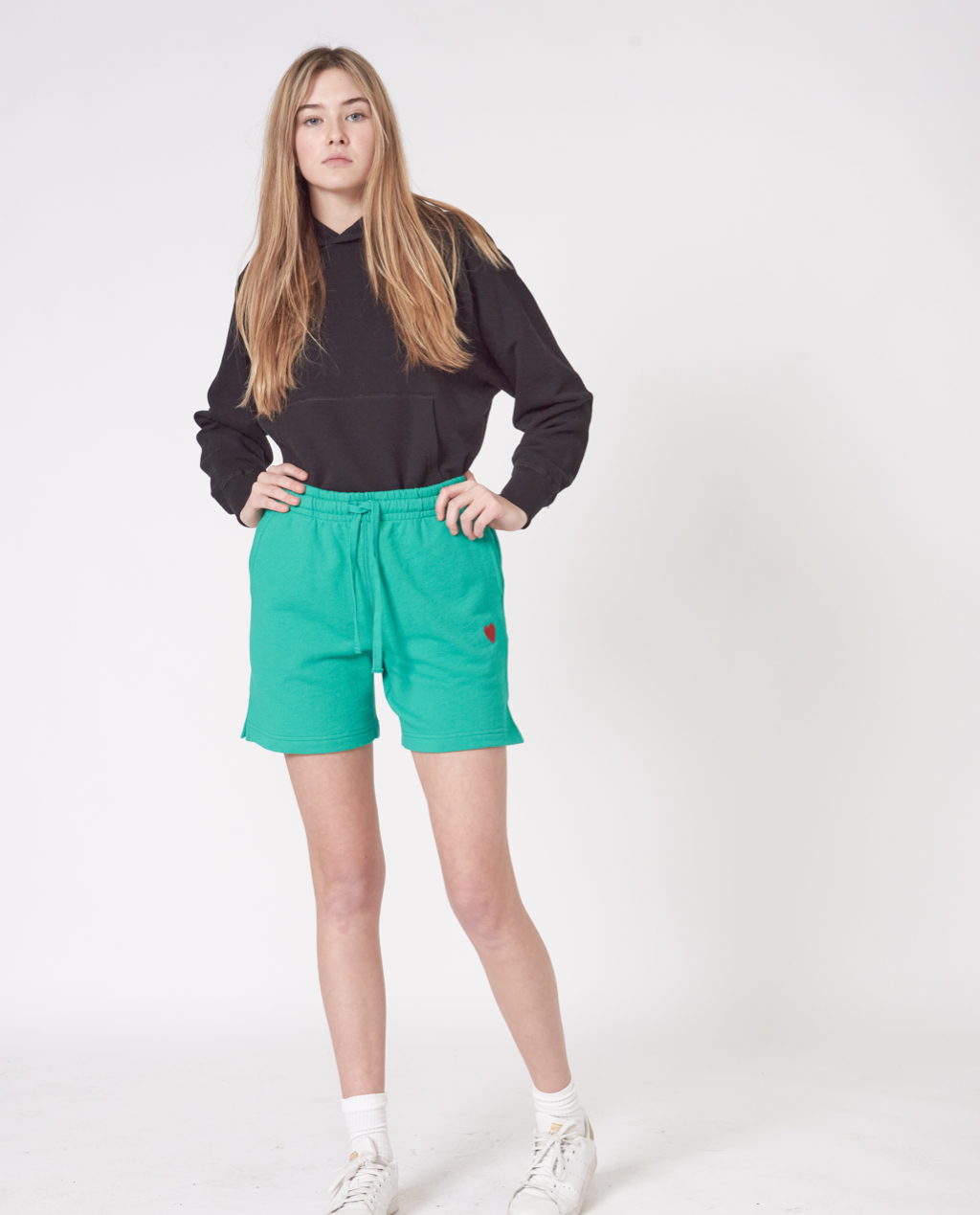 Versatile shorts with a comfortable fit, with spacious pockets and functional drawstring. Made sustainably in Canada with 100% cotton, and 50% recycled materials. Added touch of our upcycled red heart.