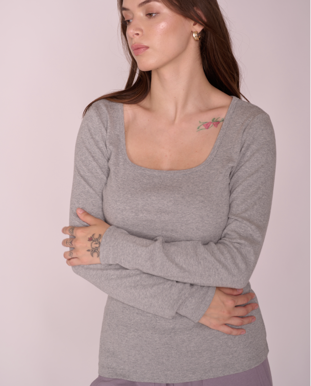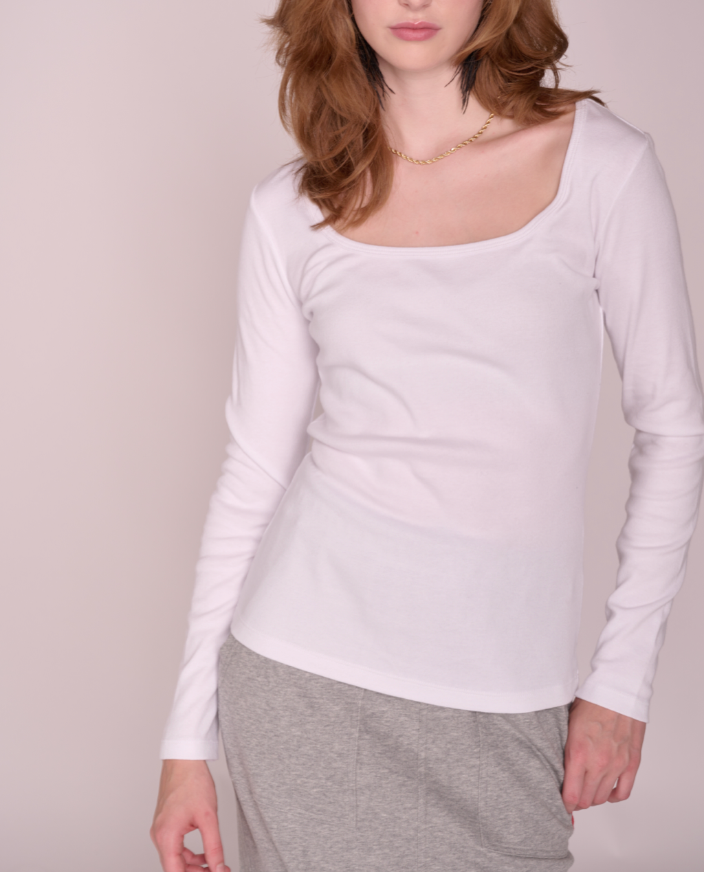 It's all in the details with this elevated better than basics top! Square neckline longsleeve designed to fit and contour, with unique rib fabric that’s 100% cotton.