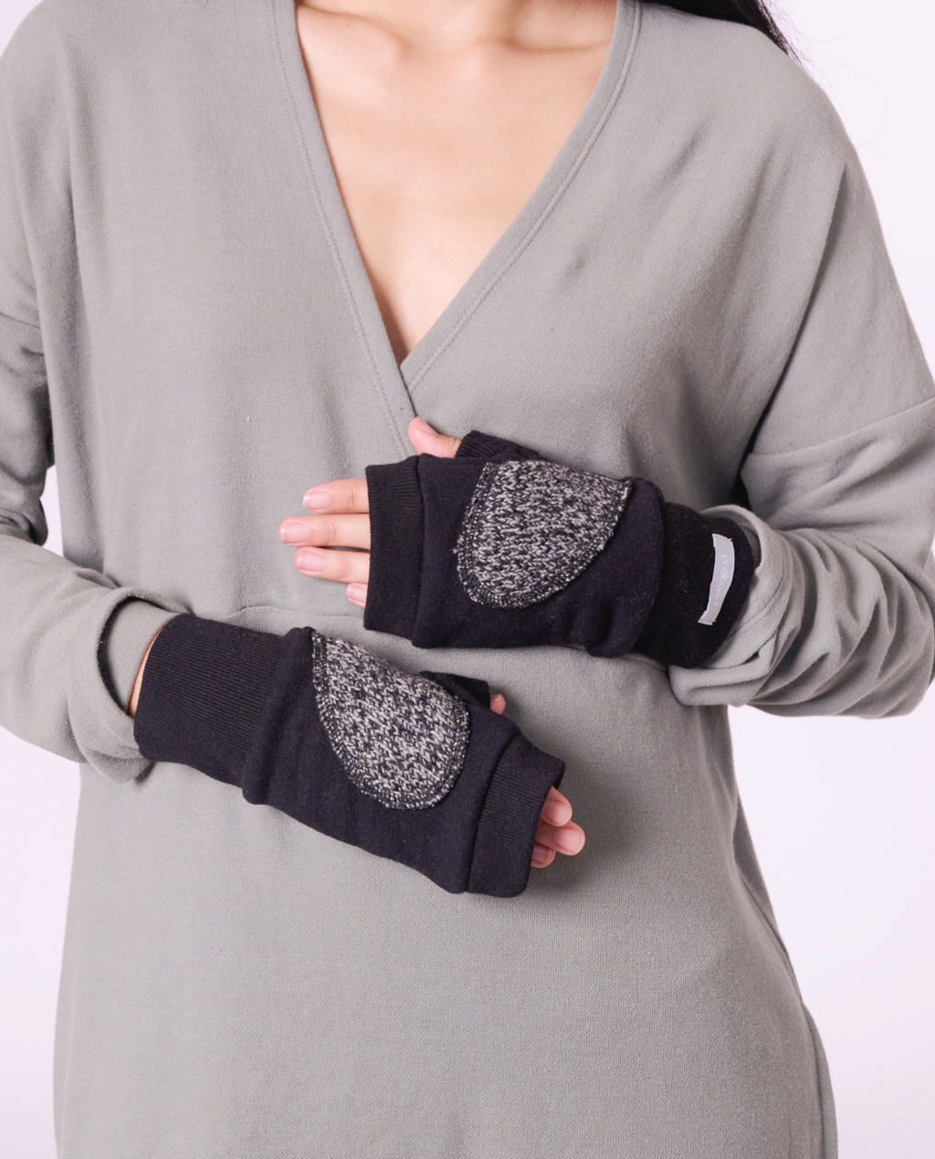 The perfect practical winter accessory perfect for those on the go, featuring upcycled heart panel on the top. Makes the ideal gift or stocking stuffer.