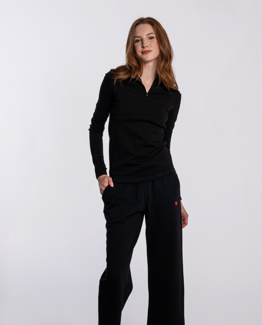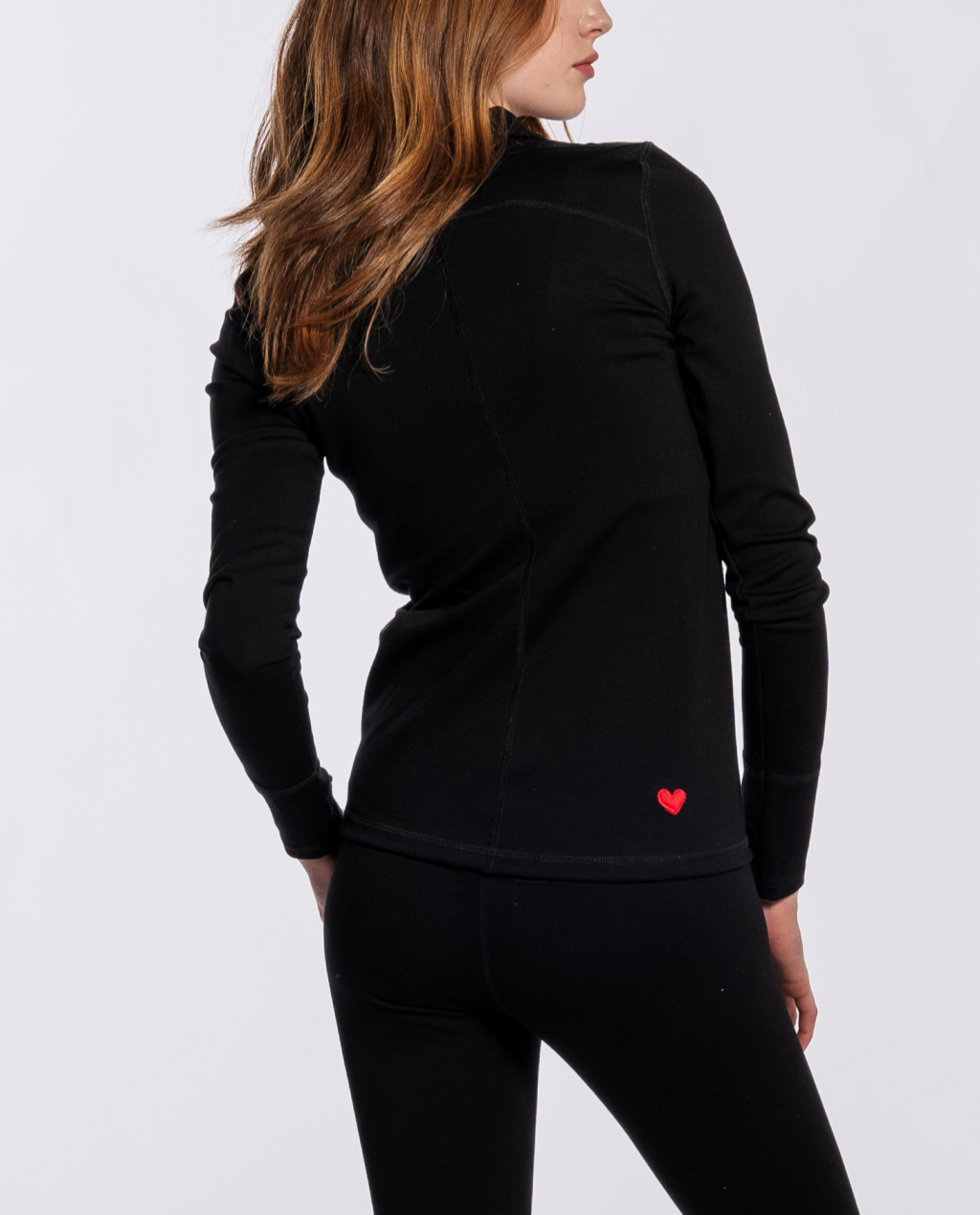Stretchy and soft workout top for whichever exercise you do, indoors and outdoors! The half zip neckline and seams on the front and back allow for maximum movement in the arms and comfort.