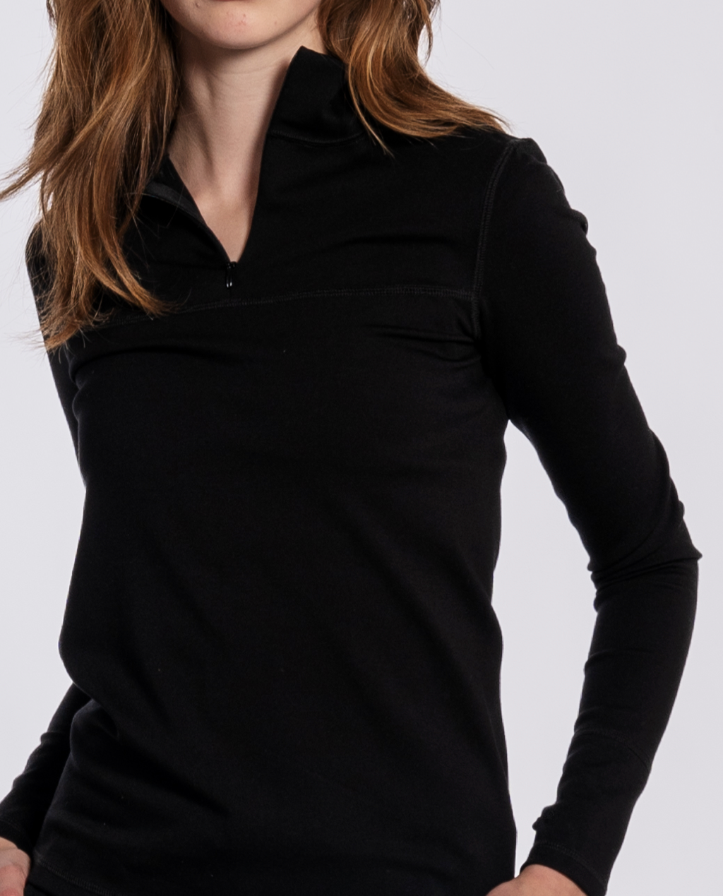 Stretchy and soft workout top for whichever exercise you do, indoors and outdoors! The half zip neckline and seams on the front and back allow for maximum movement in the arms and comfort.